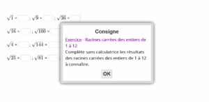 🎮 Exercices – Carrés parfaits et leurs racines carrées à connaître